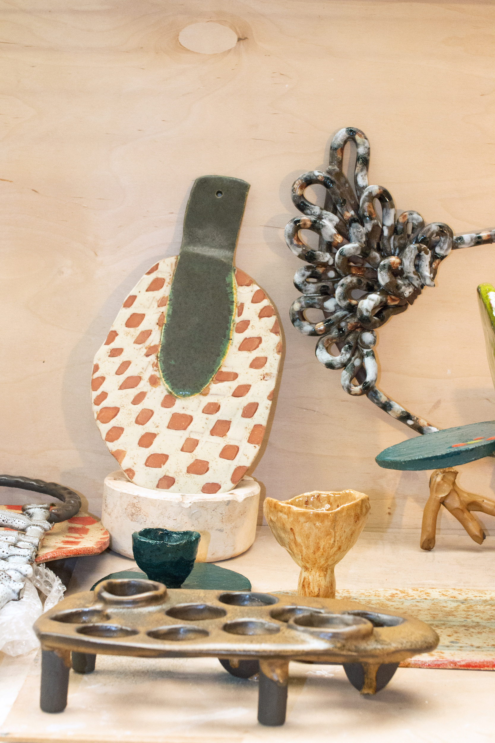 My very first encounter with the medium dates back to my childhood. I remember watching my mother and aunt making objects in ceramic and it fascinated me. When I moved to London, it wasn’t very fashionable to work with clay but I’ve always been drawn to the medium. I really got into it after having my first child in 2011. I was looking for a new studio and wanted to practice art in a more social environment, so I undertook a ceramic course at the Working Men’s College in Camden. What I love most about this material is the lack of hierarchy: clay is used by artists, designers and potters alike. It doesn’t require many skills at first and allows for a lot of freedom, because it’s a very malleable material. I also enjoy the social aspect of it. Ceramic facilities are usually quite expensive, which means that studios are often shared with other makers. It’s a very communal, social medium, probably more than other fine art practices like painting or sculpture, which can be quite lonely.
