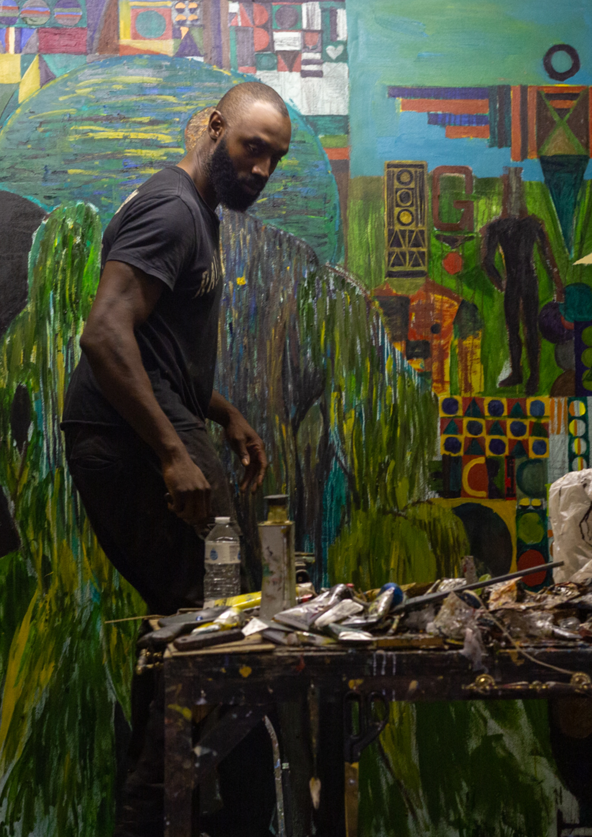 I’m currently exhibiting in a in a group show at Messums on Cork Street, Mayfair titled ‘The Ground Beneath: Material Memory and the Resilience of Hope’. My works on display demonstrate my investigation into mixed media collage using materials that speak about land, place and time. I also have a selection of works on display at Home House, the members club in Marble Arch, as part of the Canopy Collections curatorial partnership there. In the studio I’m currently working on a few large-scale pieces that I’ve been painting for some months now. My plan is to see this project through to the early part of next year. I’m also planning towards some woodcut printmaking projects that I’ll be starting in the winter season. I am deepening my exploration of patterns and symbology in that area of my practice.