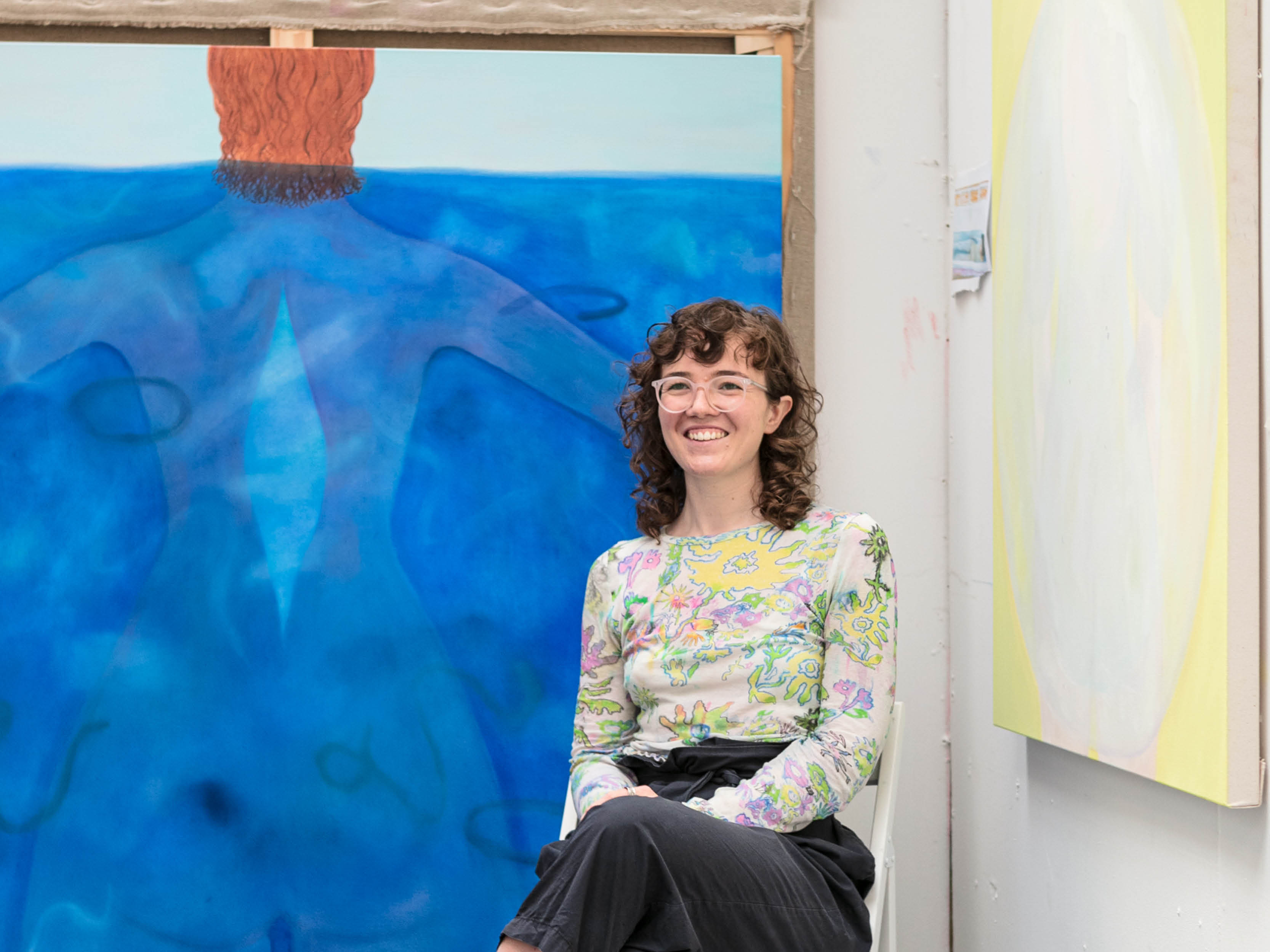 Ellie MacGarry’s work explores fleeting and intimate moments involving the body and its everyday transformations. They most often feature tight crops of skin, chest, back or hair, peeling away the garments and layers that we so often use to hide our private selves. The act of undressing is a reoccurring motif throughout the artist's paintings: buttons, shirts and ribbons come undone, unravelling parts of the body that are usually kept private or concealed. There is also an element of self-portrait, as they convey a sense of tender introspection and raise questions about what it means to be alone with our bodies. The artist has always been fascinated by framing devices in painting, as both a way to emphasise the importance of a particular moment and to allow for the imagination of the viewer to expand beyond the constraints of the painting itself.