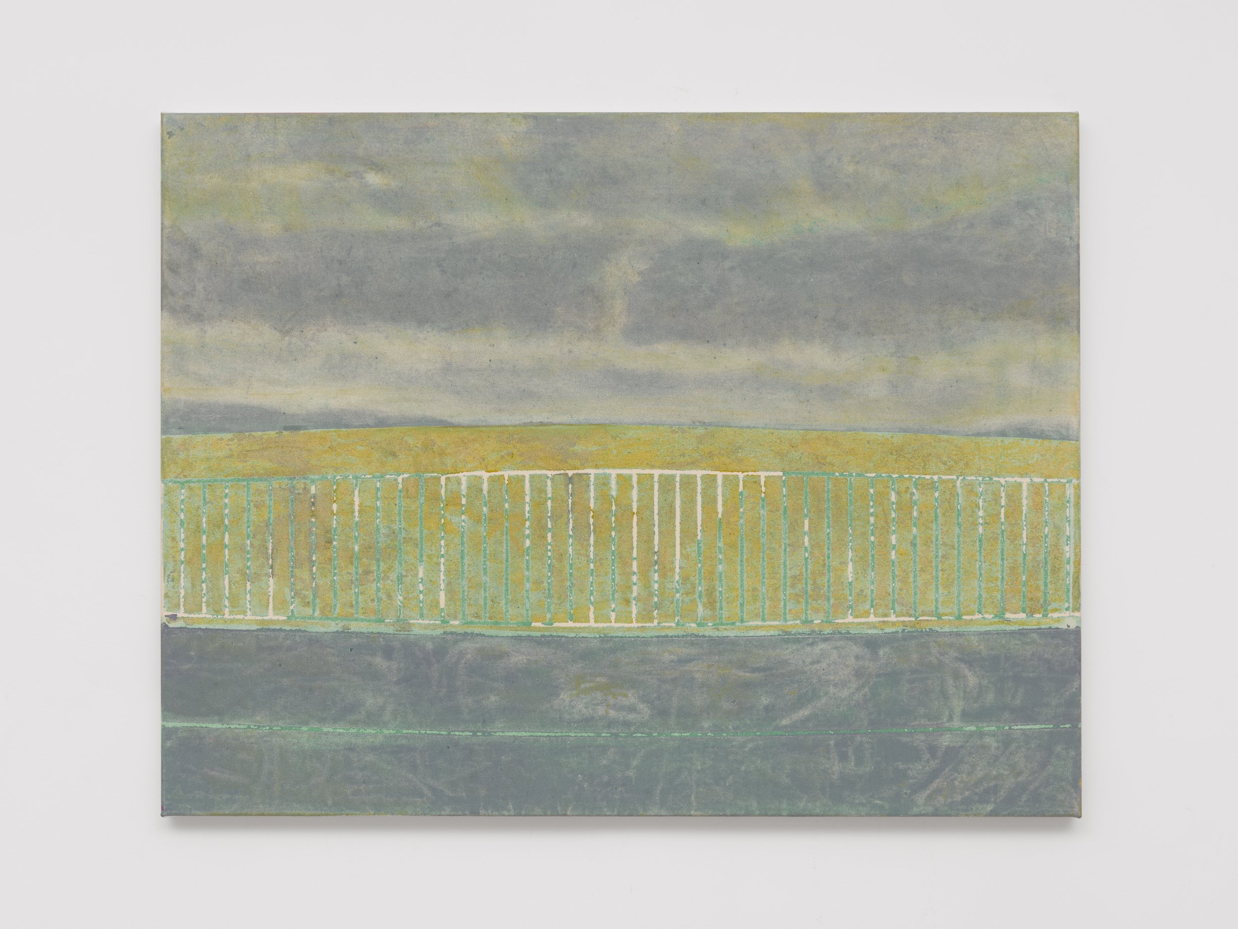Lara Davies works across figuration and abstraction to explore the interplay between place, memory, and personal history. Her most recent body of work was made in response to a journey the artist took in the summer of 2023, in which she traced the length of the UK on her bicycle travelling from Land’s End in Cornwall to John o’Groats in Scotland. The artist’s more abstract paintings are inspired by visual aspects of her domestic environment. Faded wallpaper, curtains and carpets are reinterpreted in oil paint to create subtle artworks imbued with a comforting sense of nostalgia.