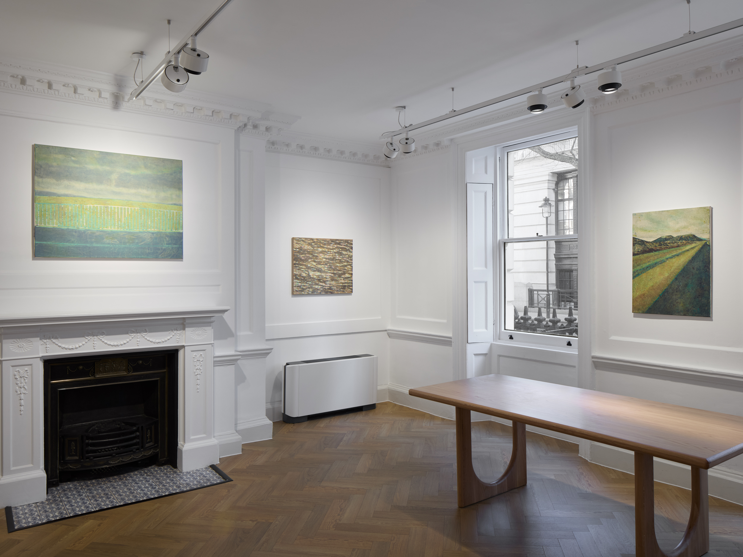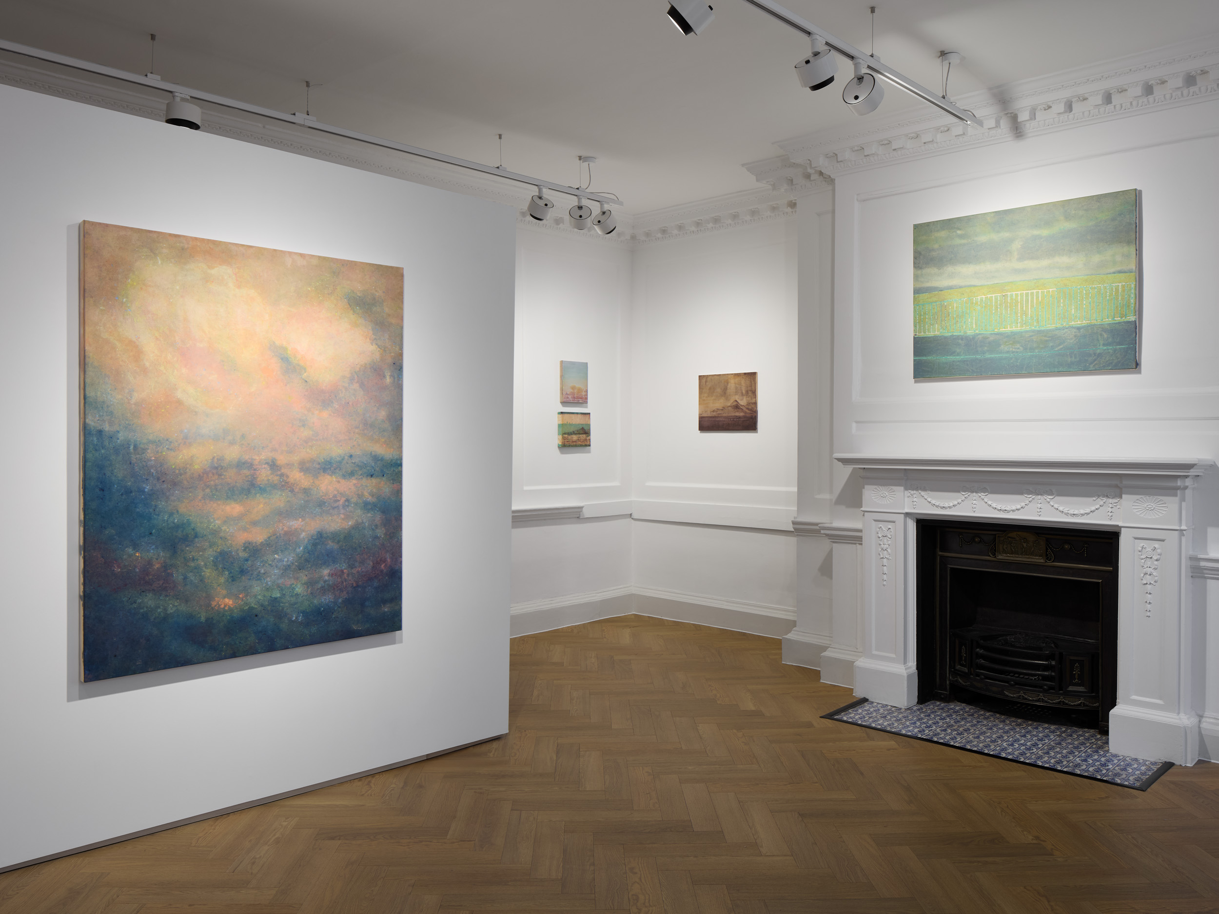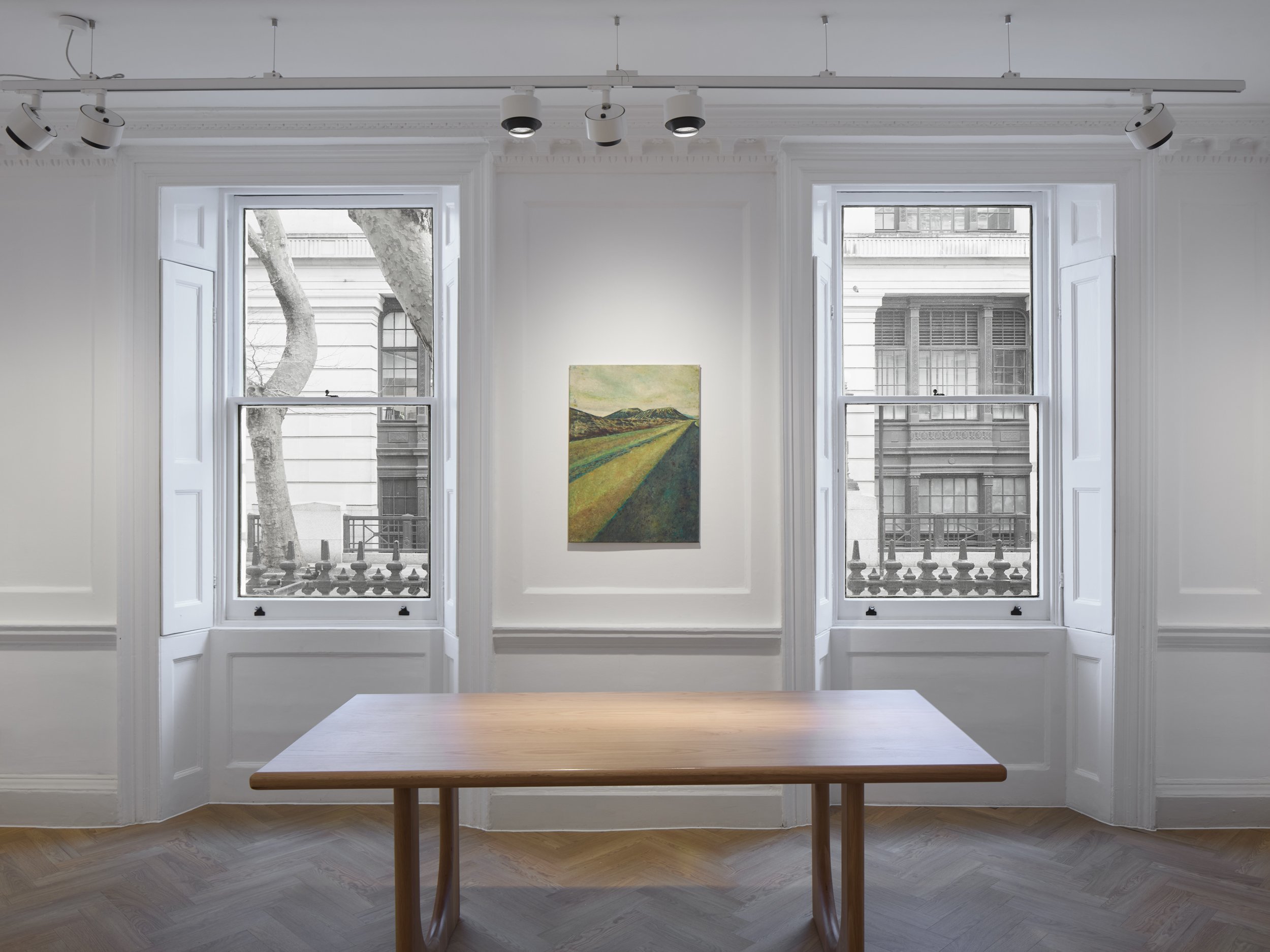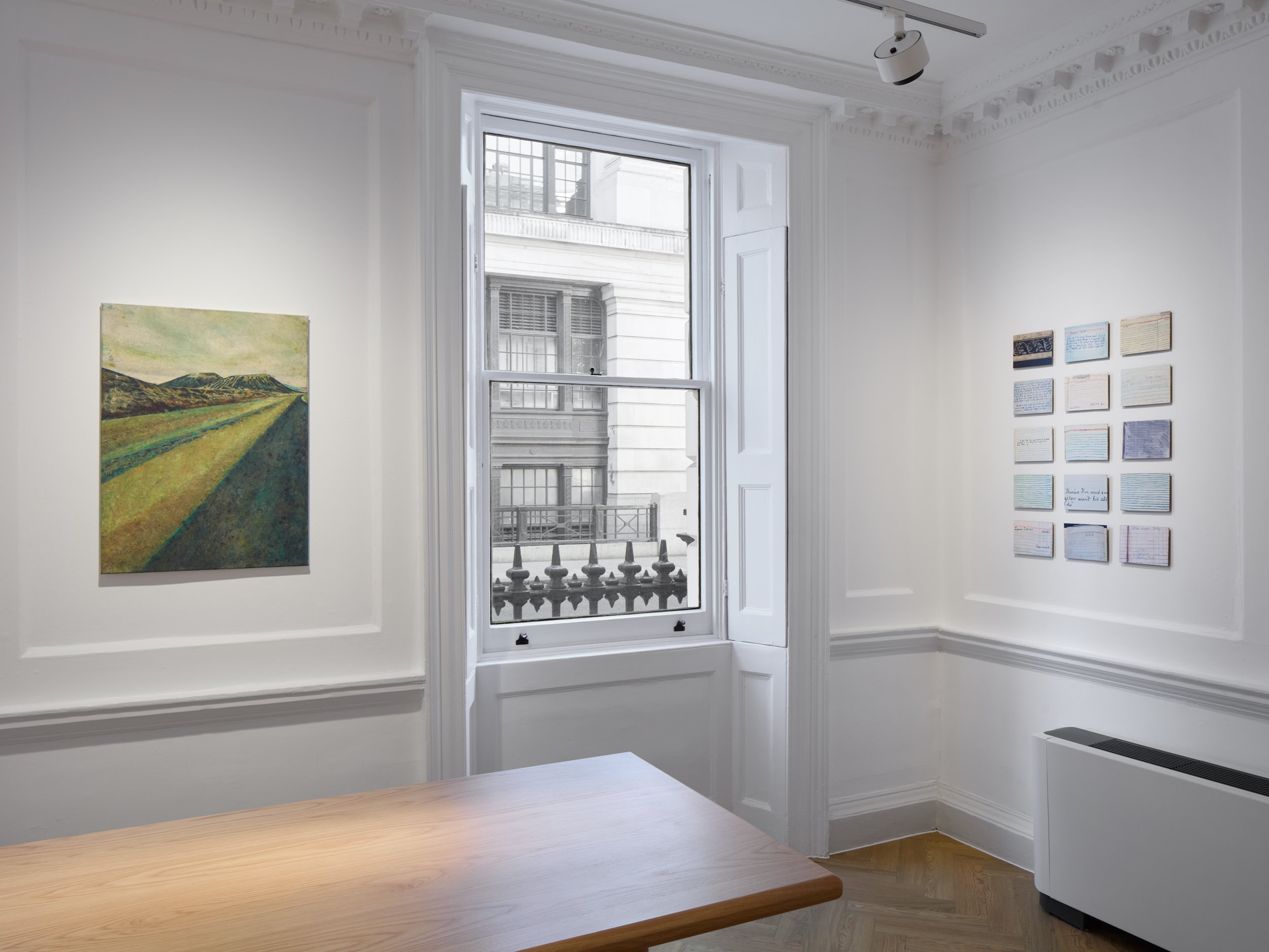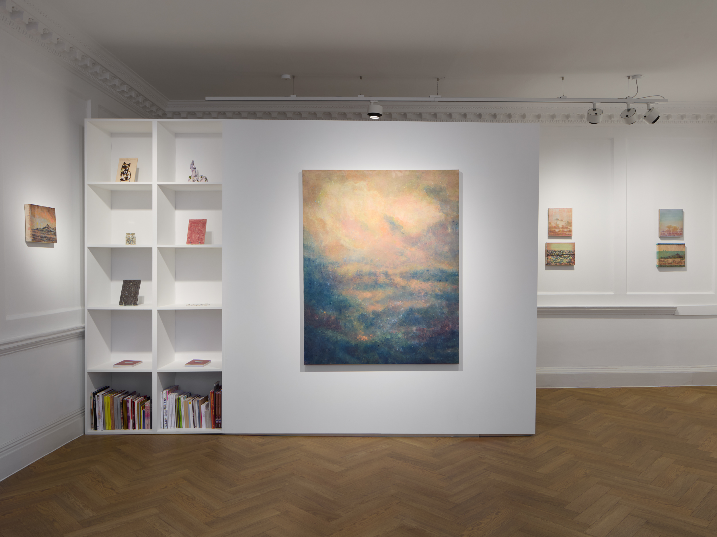 Taking this 1231-mile trip by bicycle served as a personal pilgrimage for Davies, allowing her to connect with this heroic tale from her family history, and the topography of the British Isles. The resulting paintings are imbued with a dreamlike aesthetic, where lochs, hillsides, seascapes and cloud formations appear as though in motion, transitory and ephemeral.