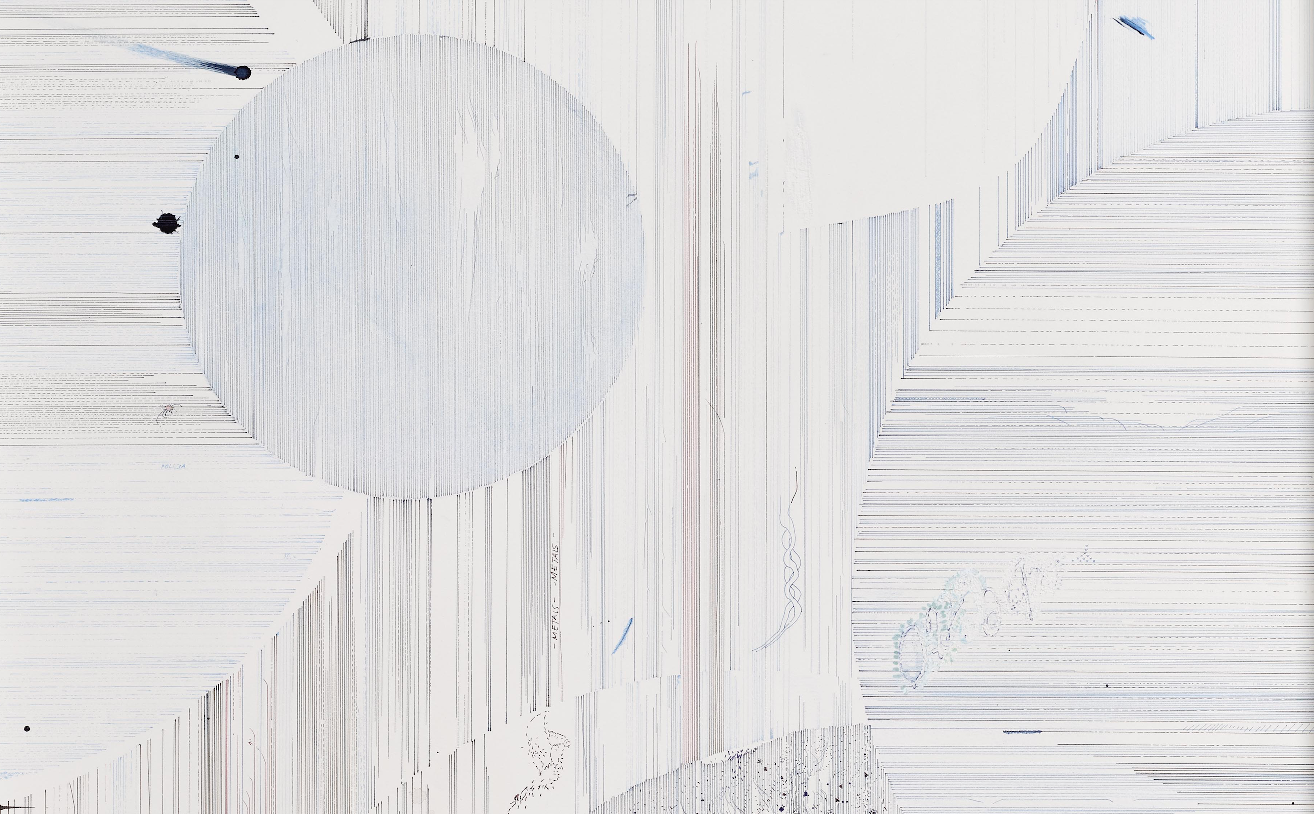 Macarena Rojas Osterling works across drawing and painting to create intricately detailed artworks which oscillate between control and fluidity. Her unique style is inspired by her background in architectural drawing and combines decisive, mathematical precision with bursts of intuitive mark making. There is a tangible sense of musicality in Rojas Osterling's work, where playful scribbles appear like musical notes across a carefully constructed backdrop of lines, evocative of musical scores and graphic notation. Each work is imbued with its own sense of rhythm, repetition and music that can be experienced visually. The artist’s carefully constructed works seem to overflow with multiplicities. These are artworks which are personal yet universal, visually complex yet welcoming, asking to be unravelled.