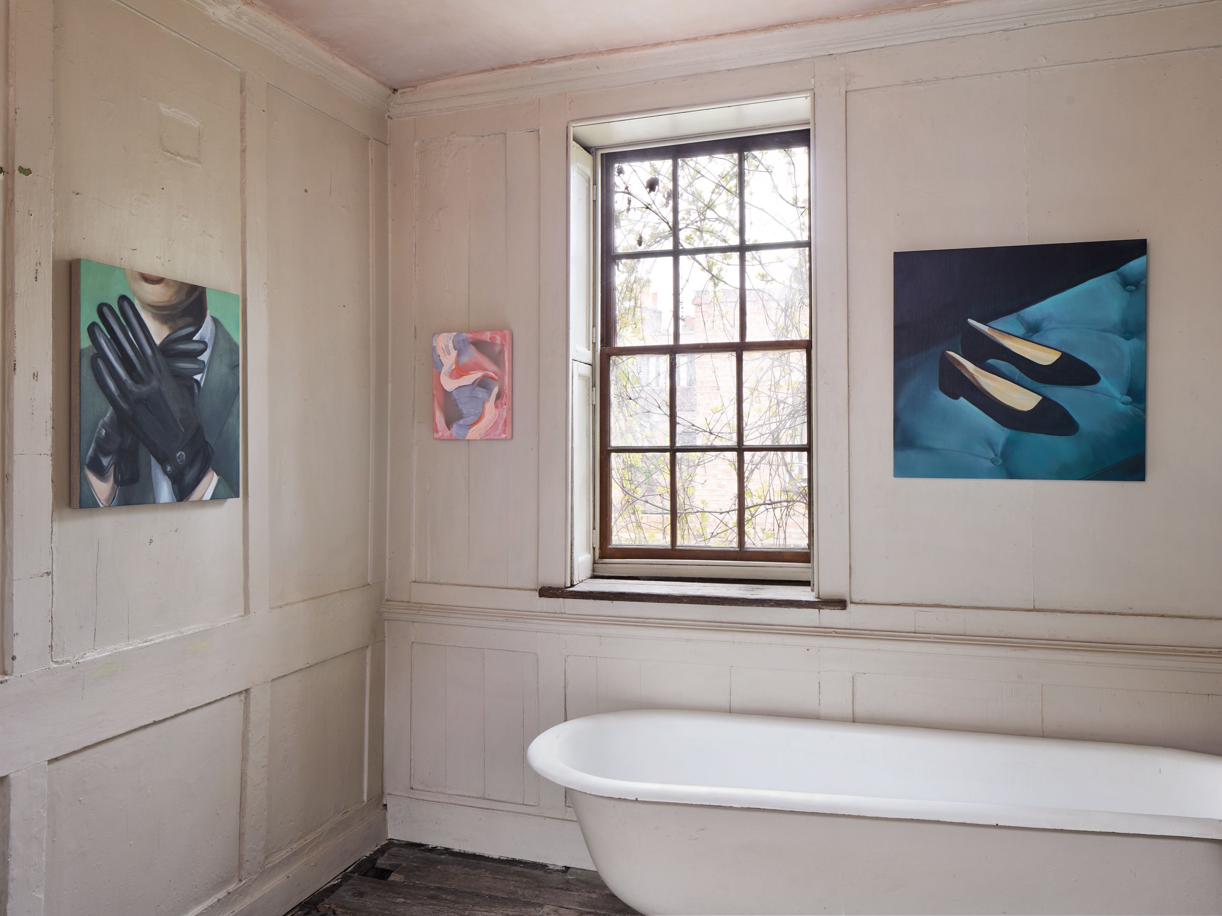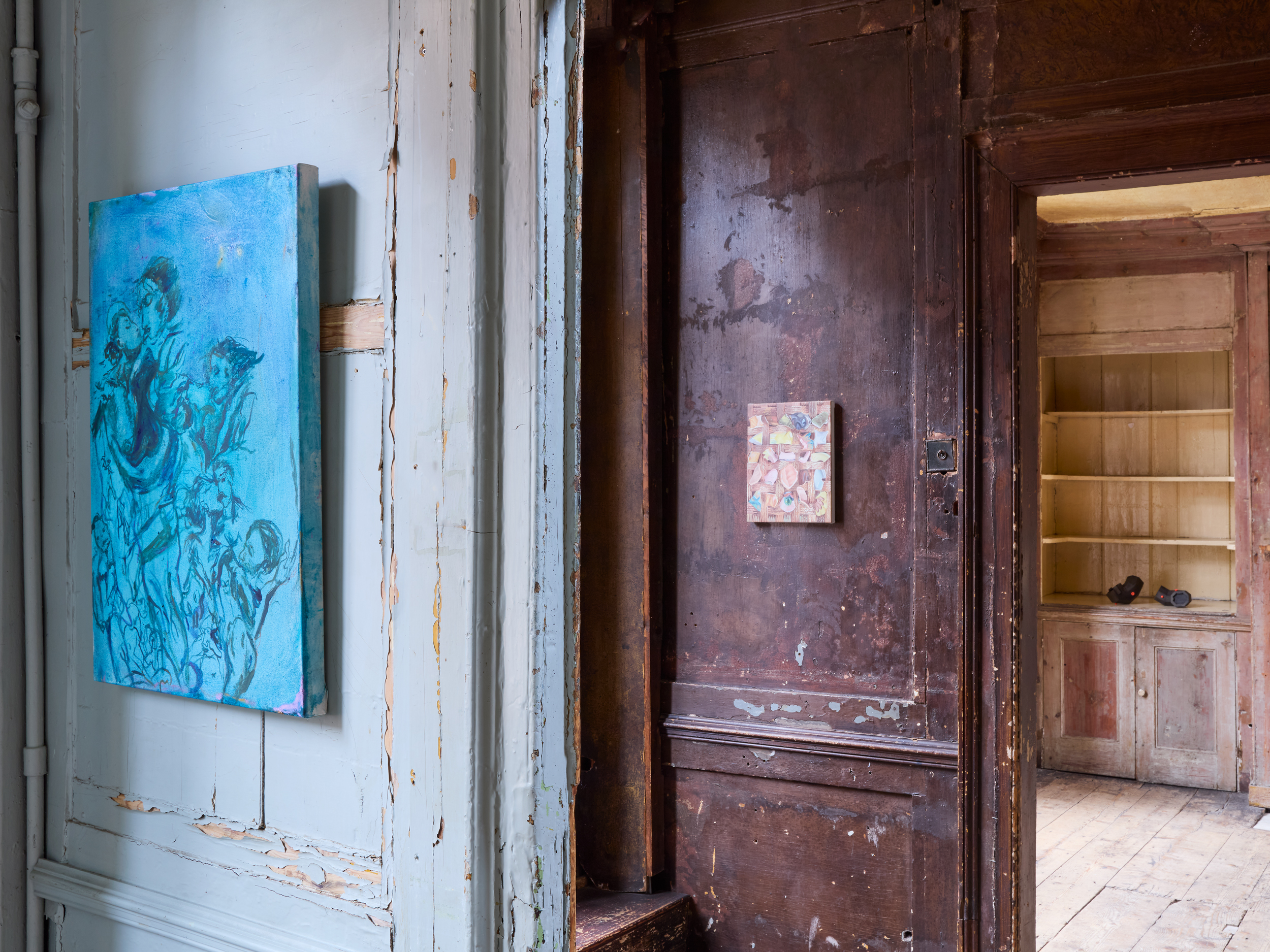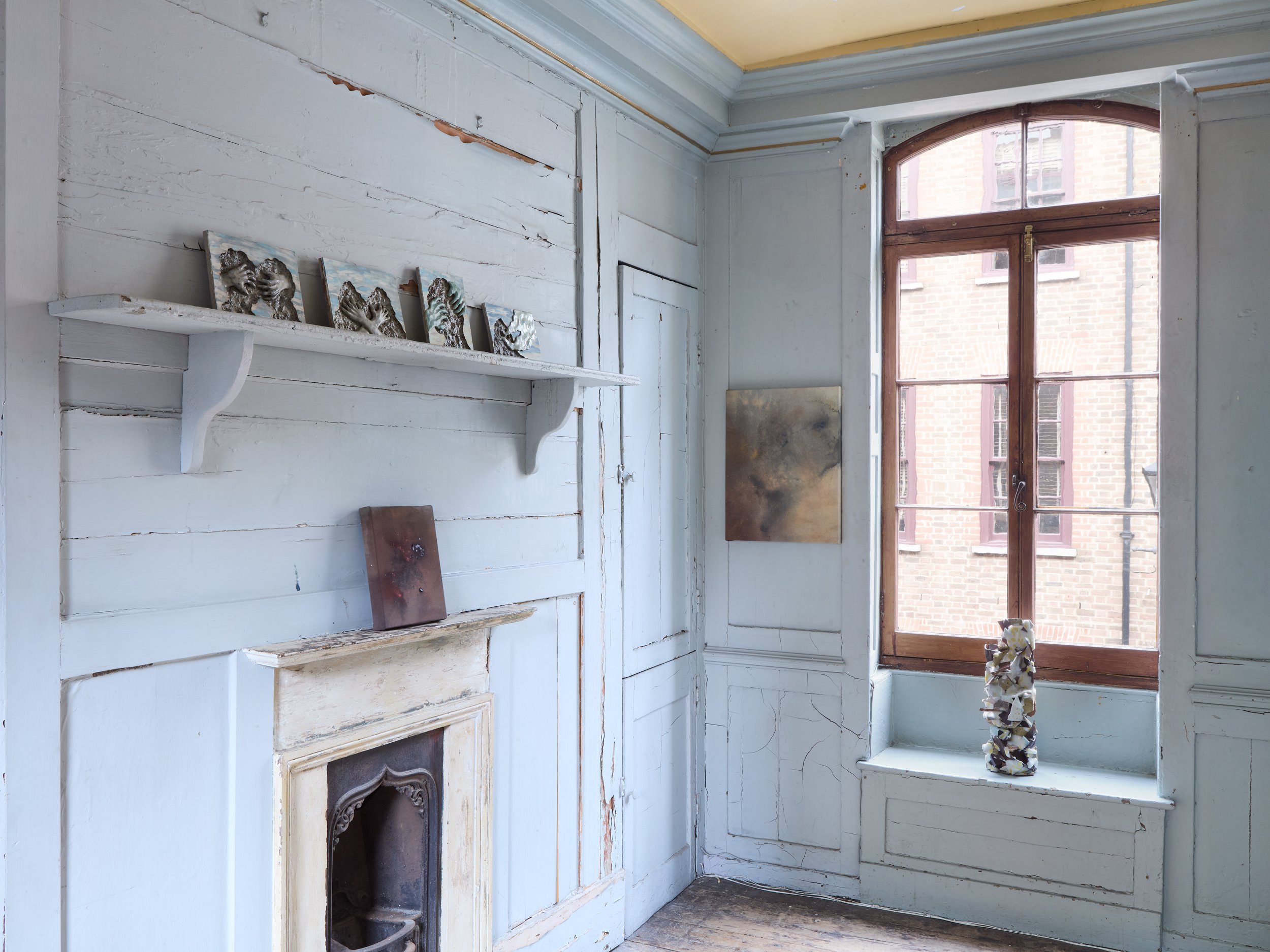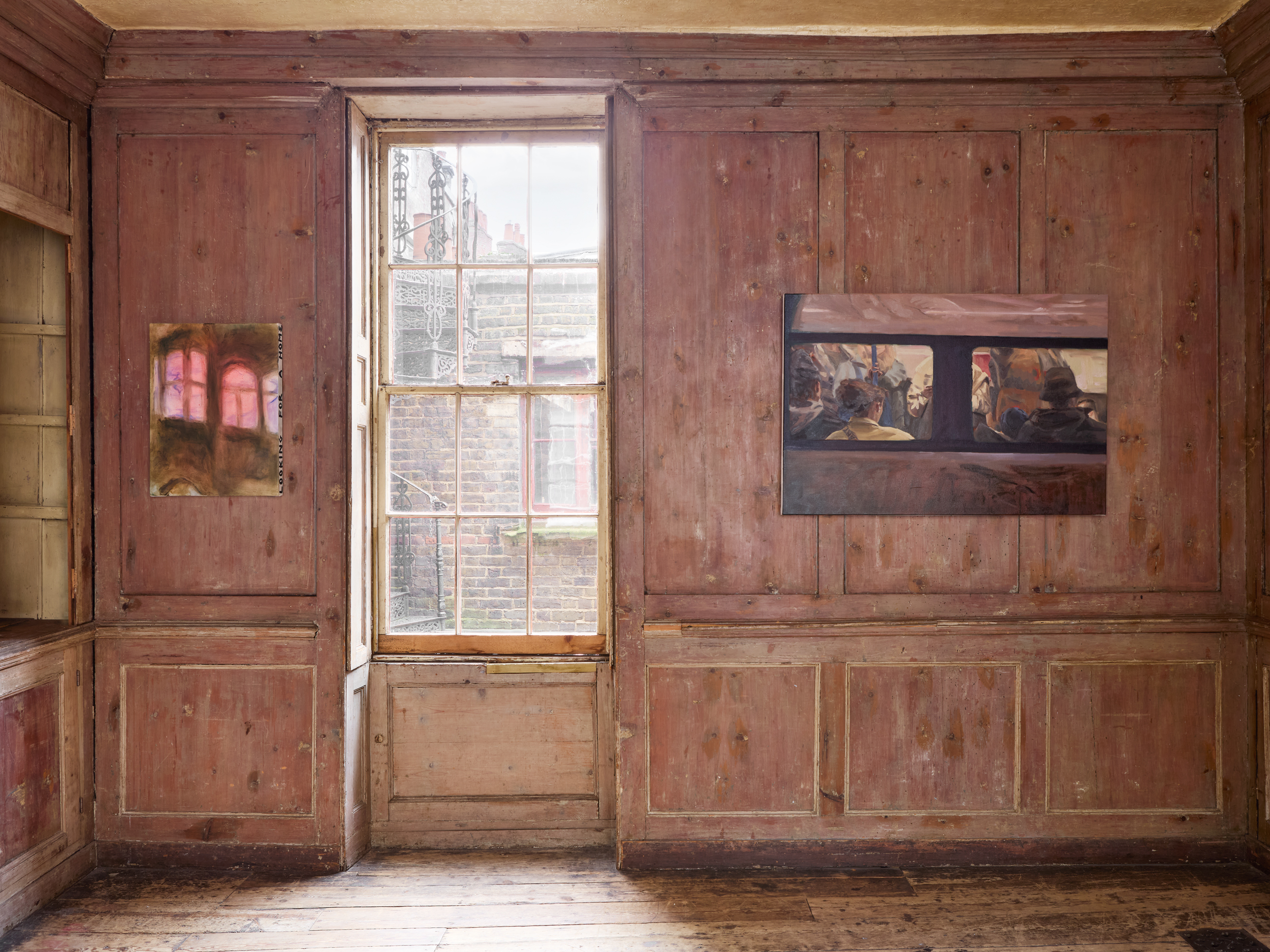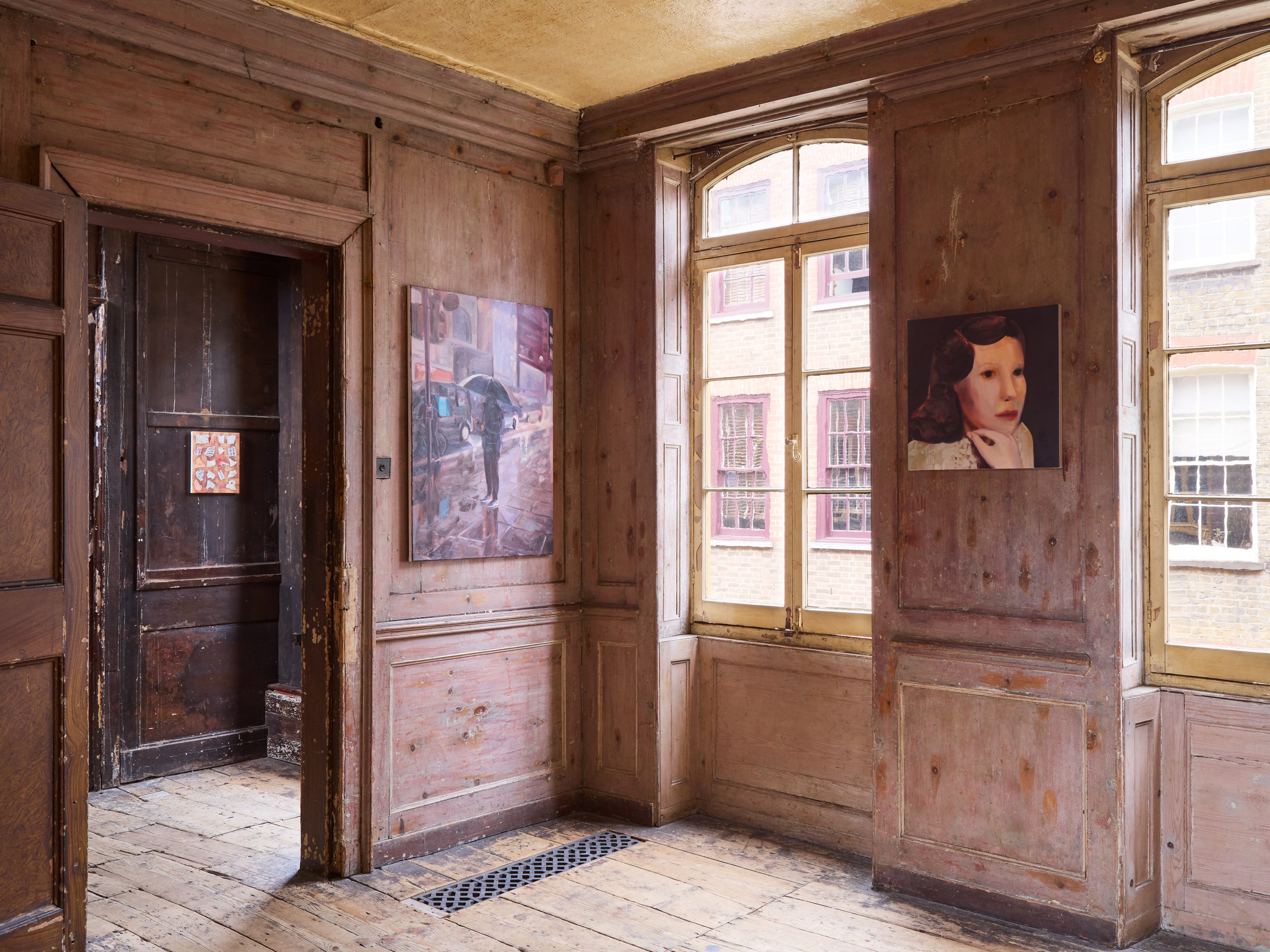 Pourquoi London is presented in a space which is an antithesis to the white cube. Rather than being displayed in visual isolation against plain white walls, the artworks are placed into conversation with the history of the building and by extension, the historical context of London more broadly.