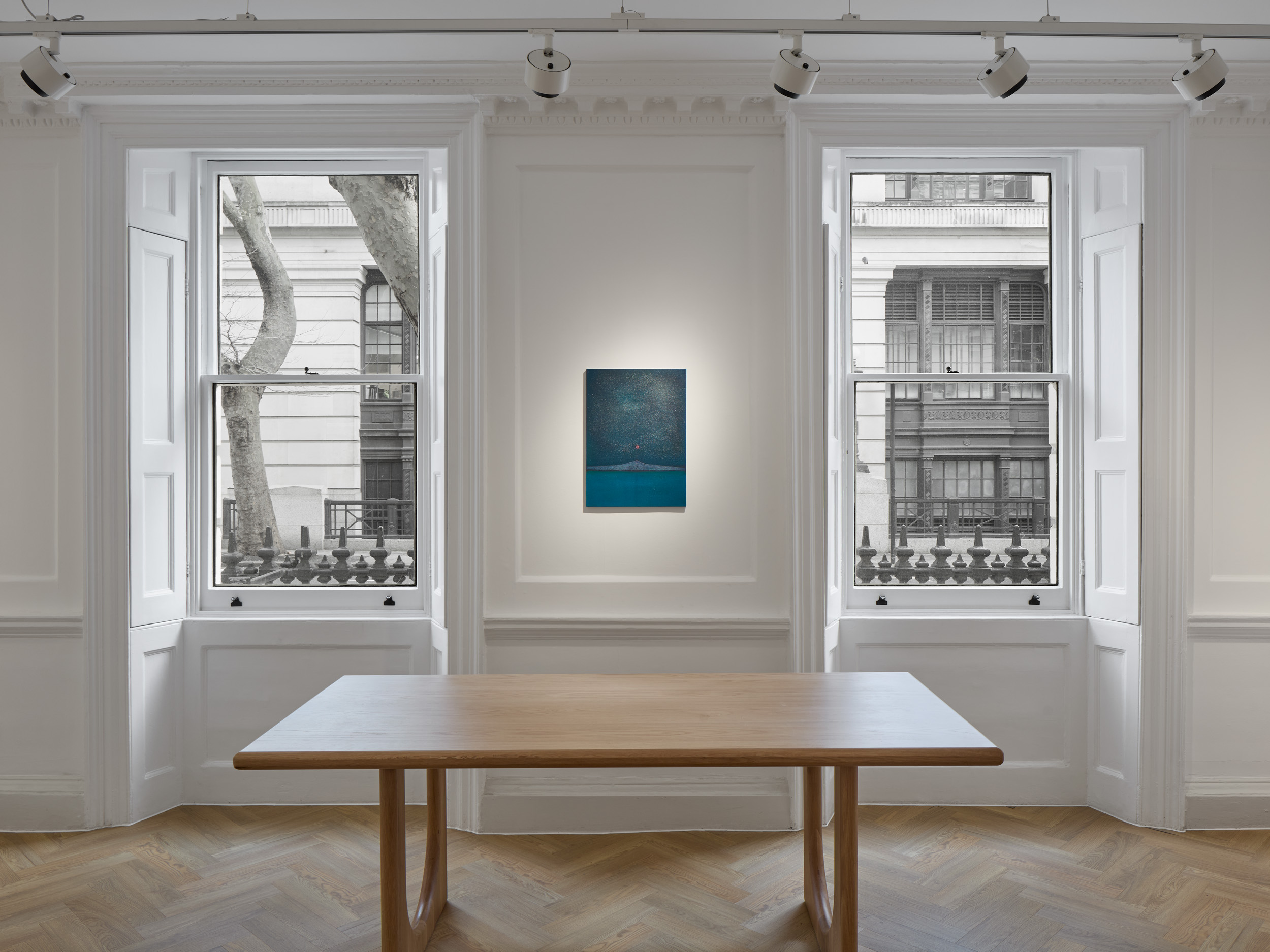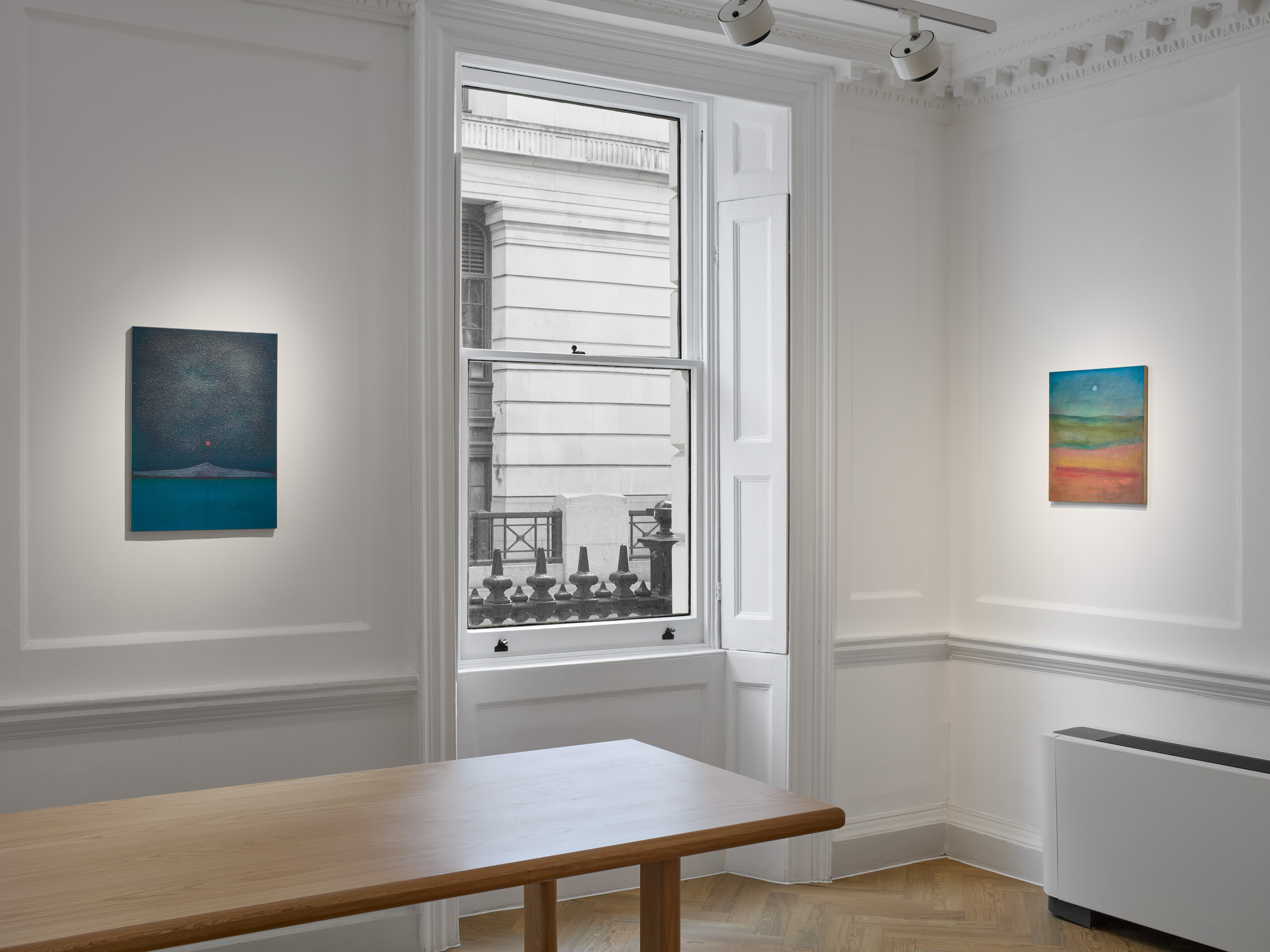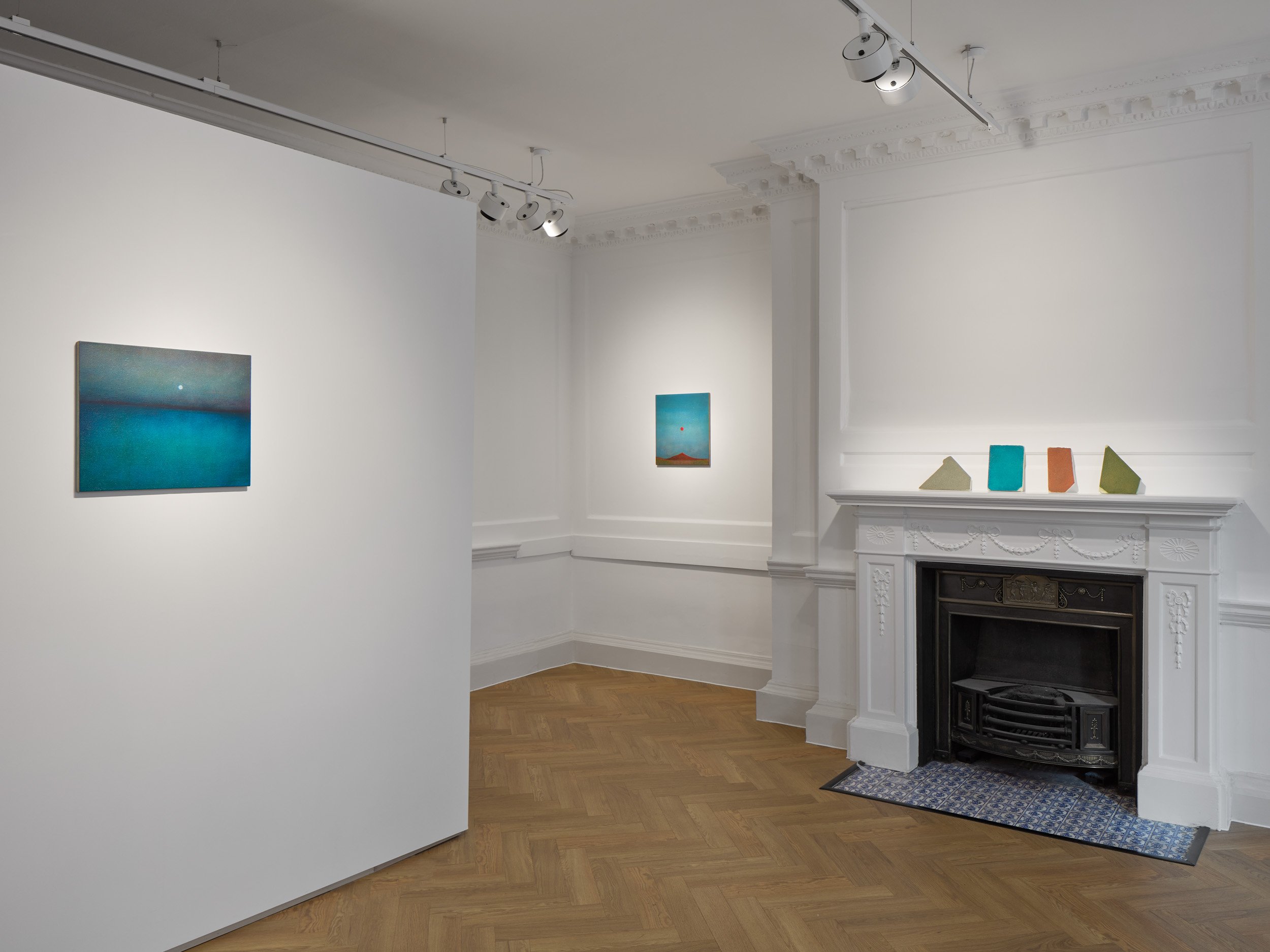 Richard J. Butler’s alluring paintings skirt the boundary between figuration and abstraction. Constructed of intricate surfaces built up in layers of grated pastel, acrylic gel and paint, his works often depict motifs such as vessels, silhouettes and celestial bodies, which appear to dissolve within vast colour fields. Butler’s works are imbued with a sense of balance, peace and serenity which is achieved through their minimal yet richly textured compositions. When viewed from a distance, recognisable forms appear while up-close, miniature abstract landscapes abound, creating sensual and hallucinatory surfaces that explore painting’s illusionistic potential.