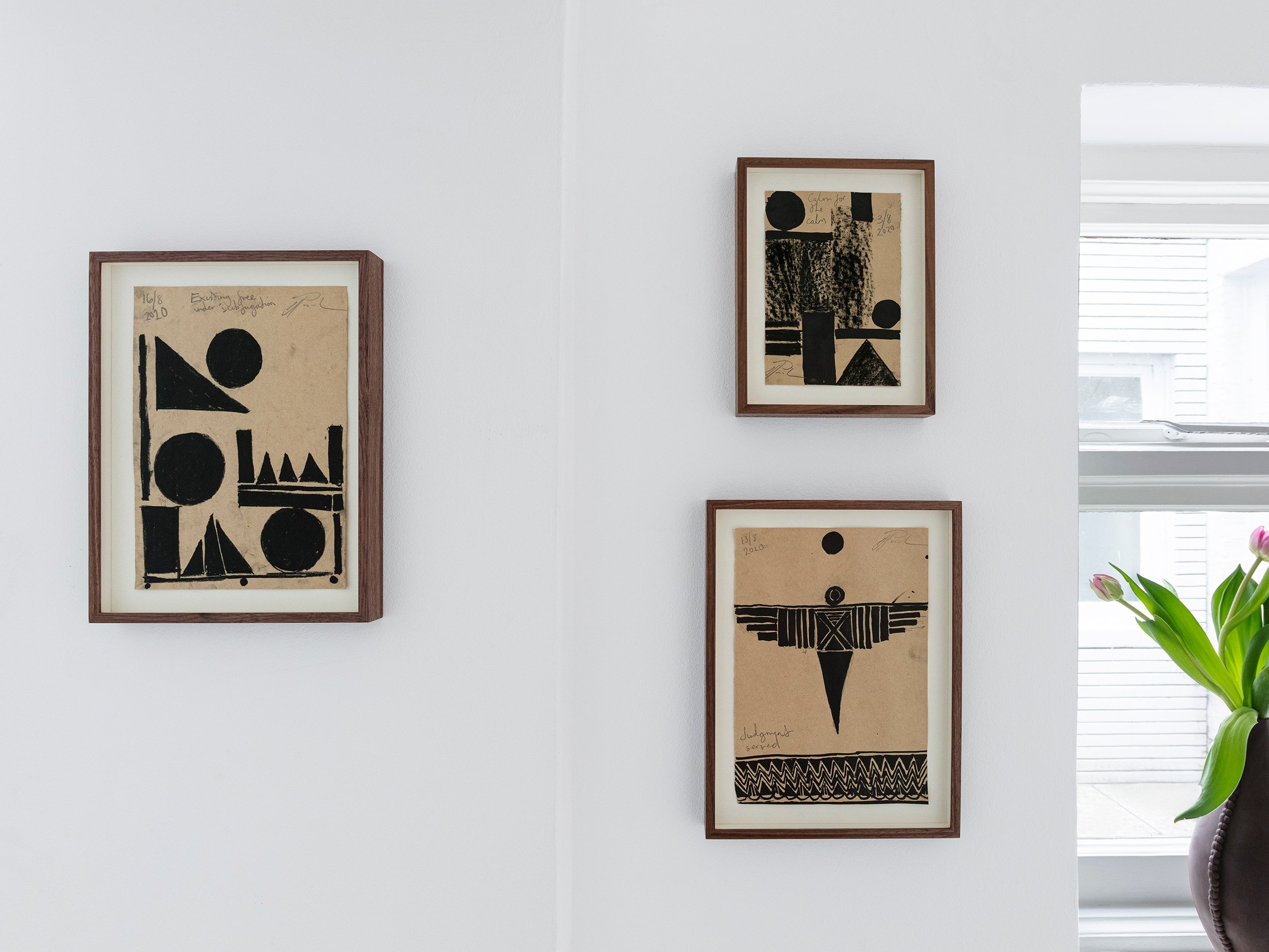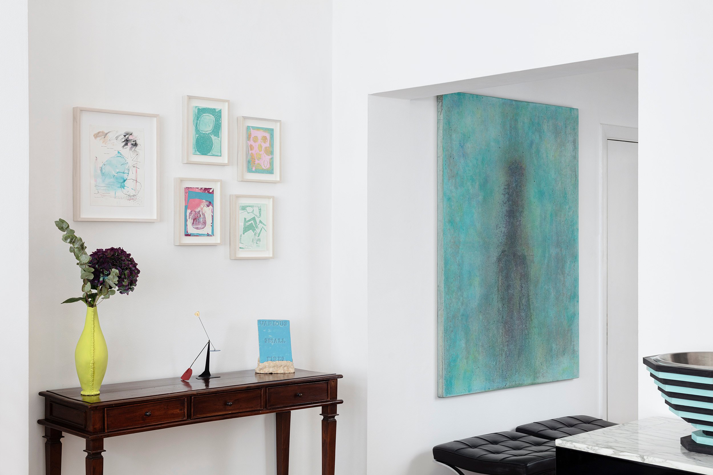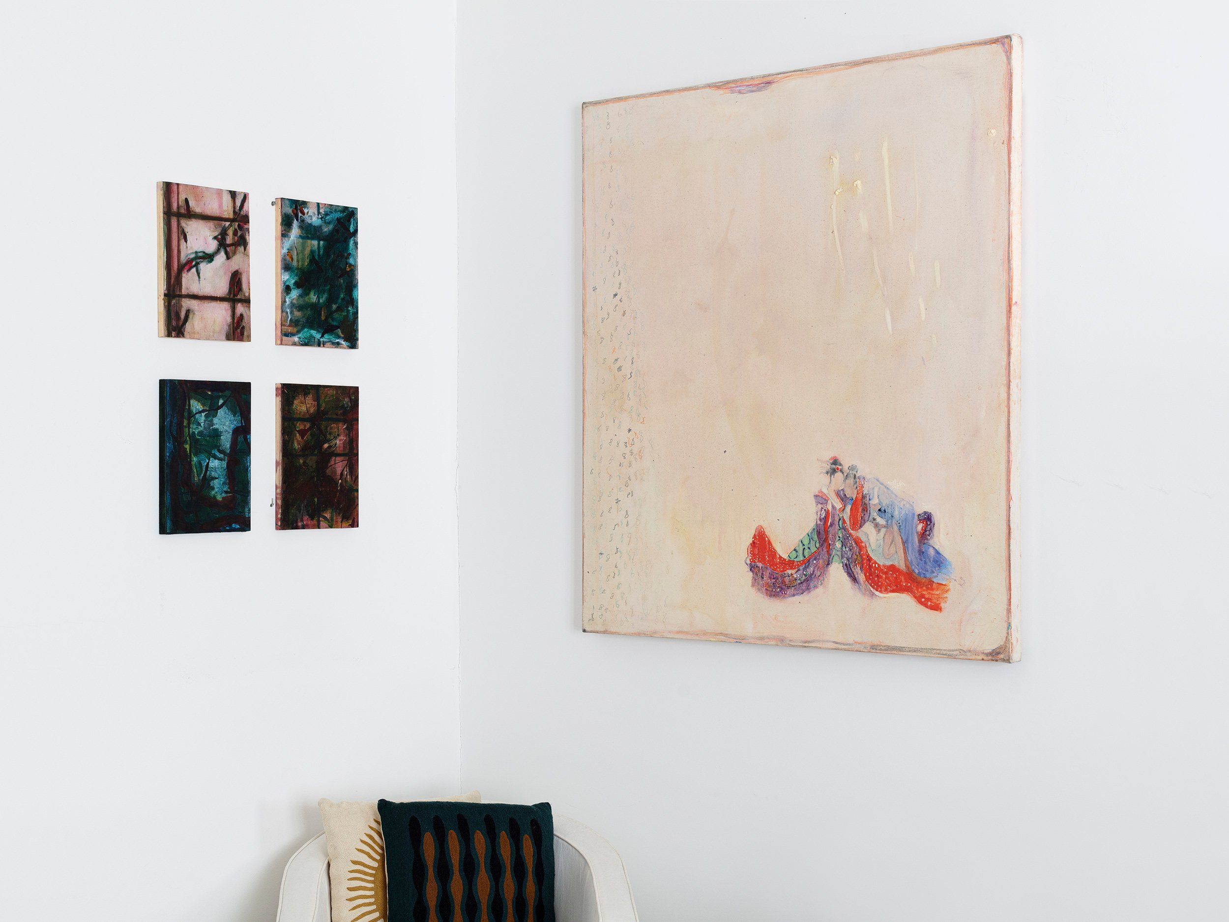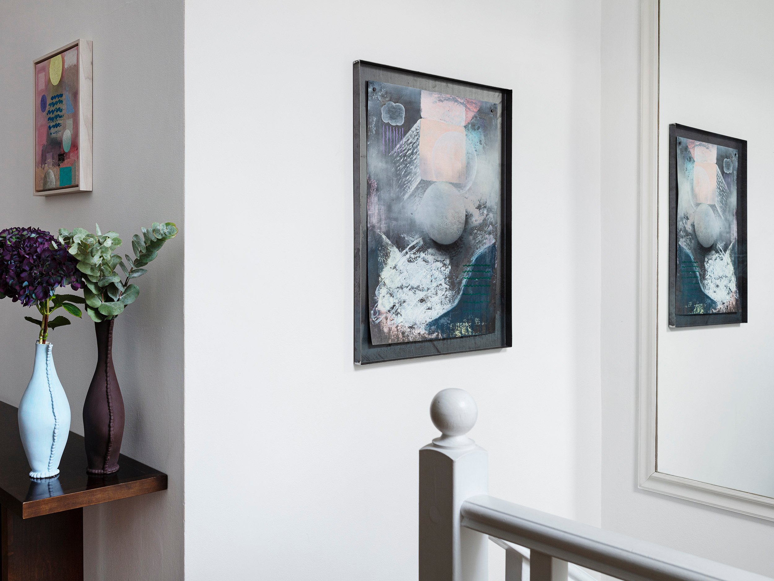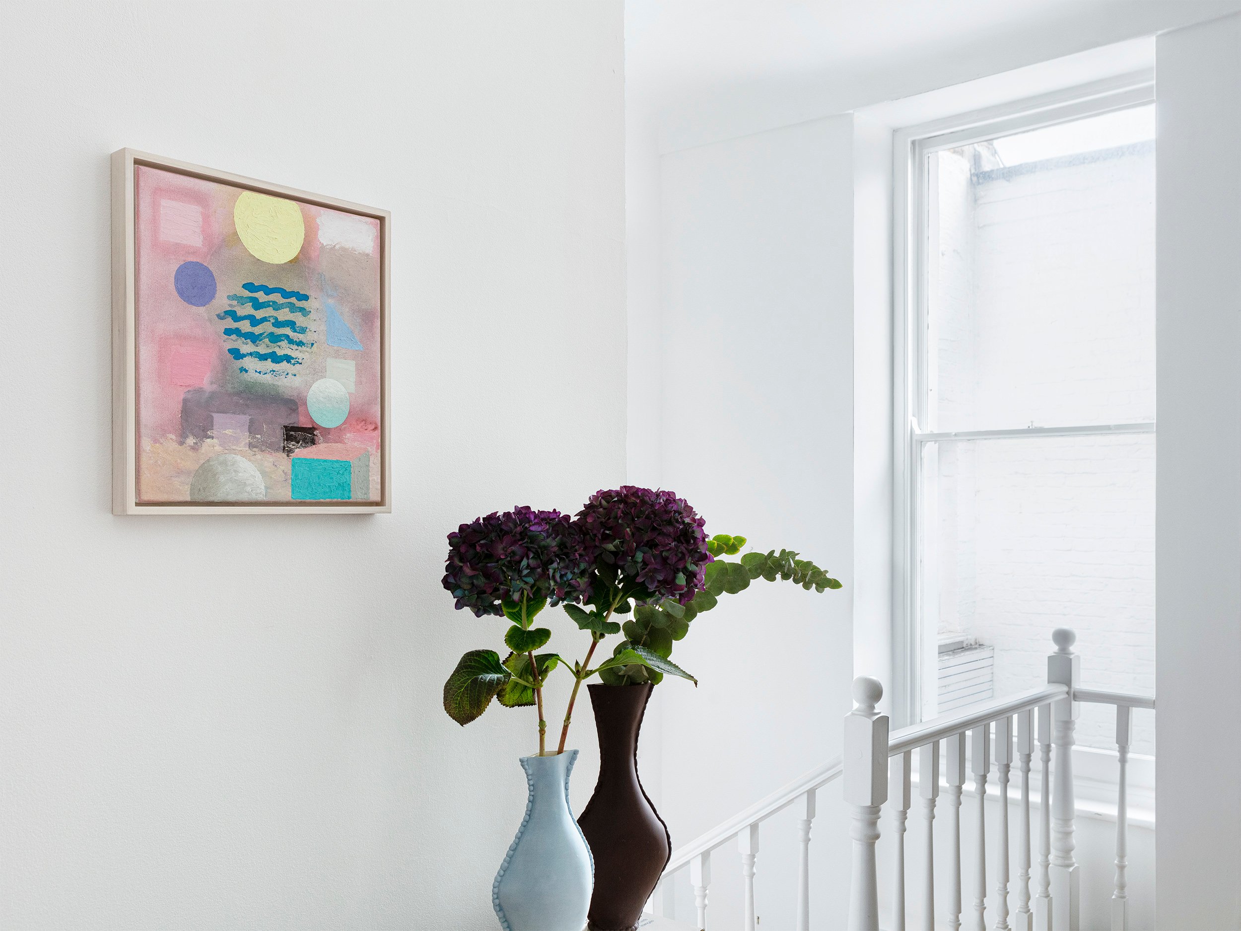 Displayed and photographed in a collector’s home on Cadogan Place, London, this collection brings together unique pieces by ten artists with a strong focus on painting. Celebrating both the end of a year and the arrival of a new one, winter is a season that invites contemplation and introspection. Embracing the romantic themes of nature, legends, sensory emotions and metaphysical thoughts, Do Not Swear by the Moon celebrates the home as an inspirational space, the cosiest of all refuges. Canopy Collections is delighted to collaborate with London-based designer Charlotte Kingsnorth, whose selection of furniture includes her iconic Babafelt chair. This collection also presents large paintings by Sarah Lederman, in which the imagery often depicts memories of past places and people engaged in an intimate moment. Referencing ancient art forms, Richard J. Butler’s pastel paintings portray human figures fading within vast colour fields, as if lost in a kind of cosmic loneliness. His Polaroid series, entitled A Second Sun, is a growing archive of neglected flowers and plants taken in people’s gardens during his daily winter wanderings. Overlooked nature is also glorified in Aethan Wills’ oil paintings, which celebrate Japanese aesthetics, translating traditional Shō-ji screens into grids, landscapes into seasons and delicate flowers into abstract brushstrokes. In William Stein’s small paintings, a lexicon of universal geometric shapes form mysterious arrangements that are reminiscent of surreal dreamscapes. Do not Swear by the Moon also features a wide selection of works on paper by Stein, editions by Cecilia Sjoholm, and unique charcoal and ink drawings by Irvin Pascal. Canopy Collections continues to present William Cobbing’s iconic ceramic book covers and Paulina Michnowska’s delicate watercolours on paper, along with newly commissioned ceramic book holders by Francesca Anfossi.